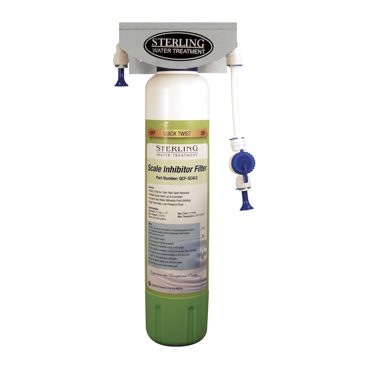 Q1 Series, single cartridge, sanitary quick connect systems are available for taste & odor improvement of drinking water (Model Q1-CB1) or scale reduction (Model Q1-SR1) with taste & odor improvement.
